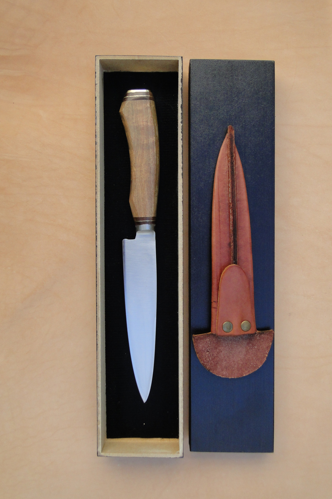 Se presenta en las medidas 10-12-14-16-18 y 20 cm de hoja con el mango acorde al tamaño de la misma, afilado listo para disfrutar, acompañado de vaina confeccionada en cuero vacuno que asegura el transporte para ocasiones donde