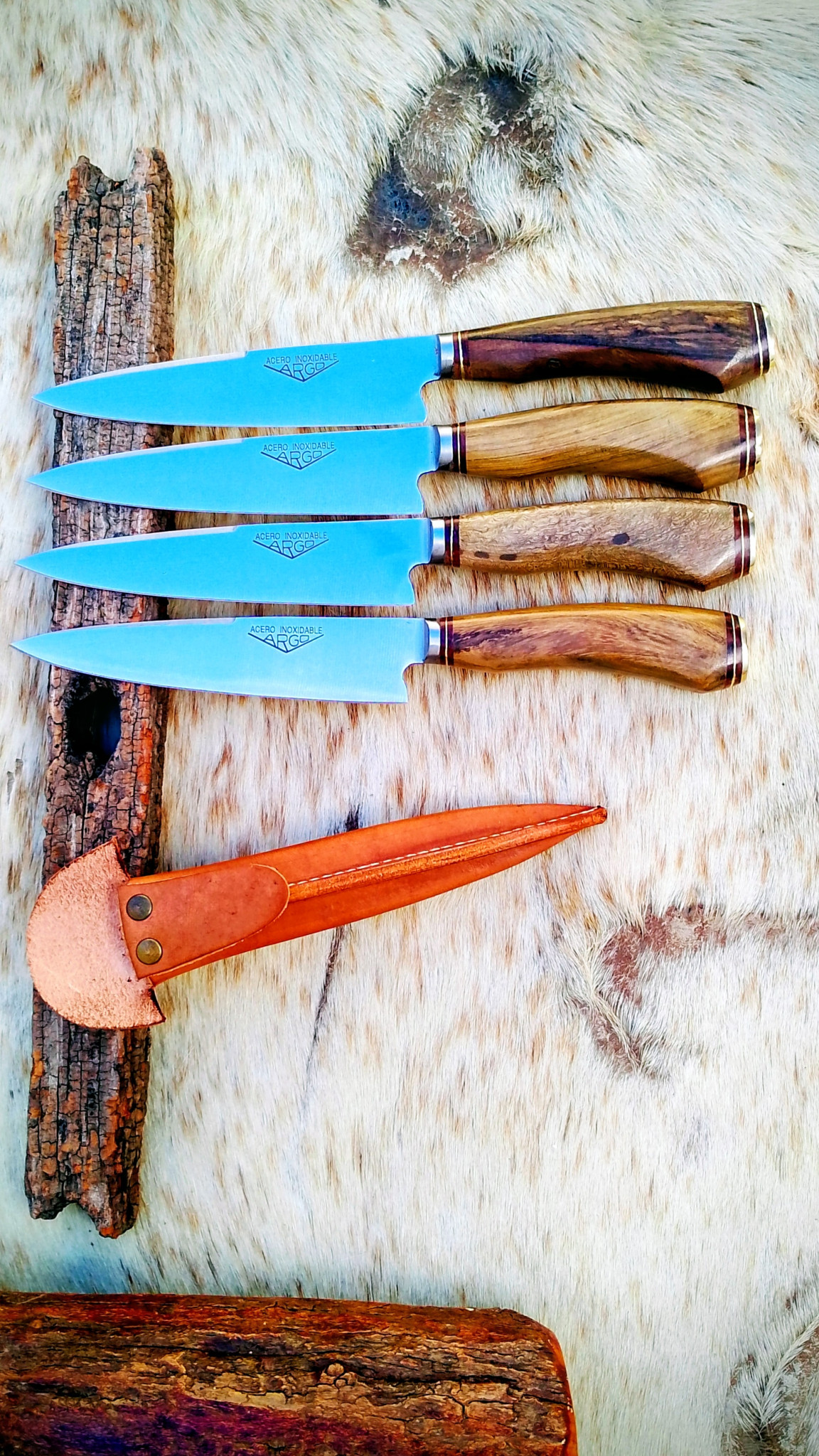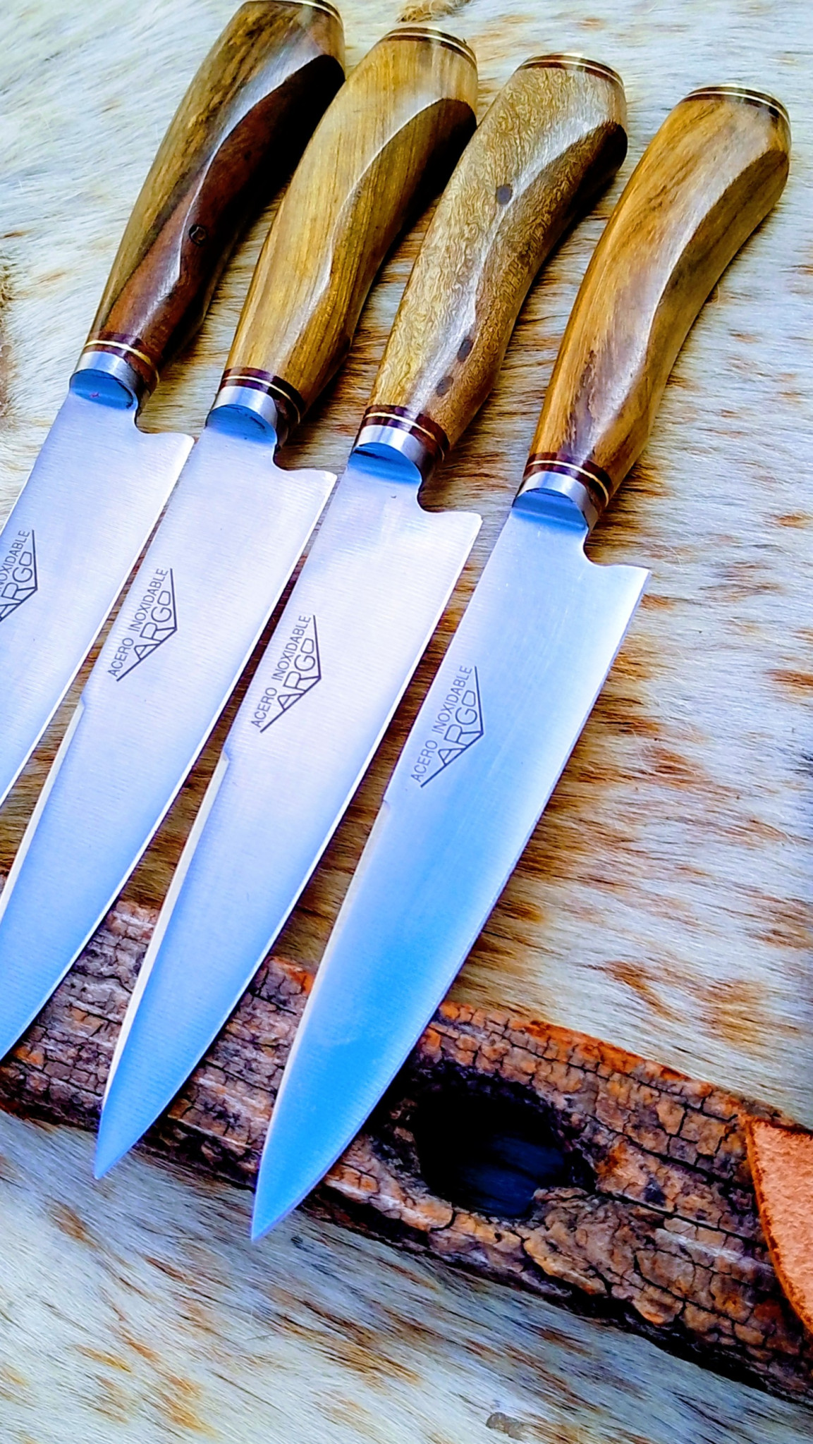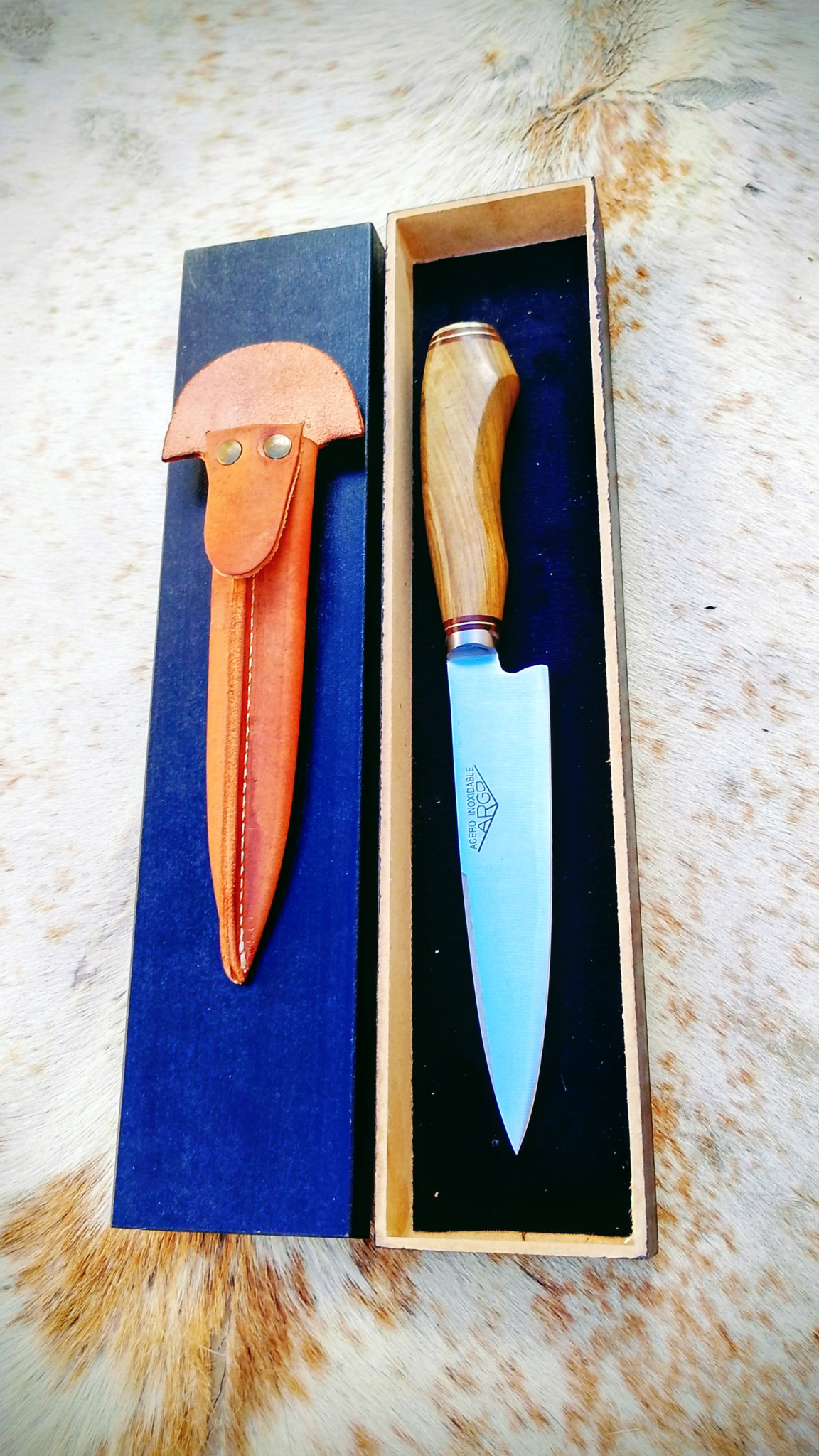 Se presenta en las medidas 10-12-14-16-18 y 20 cm de hoja con el mango acorde al tamaño de la misma, afilado listo para disfrutar, acompañado de vaina confeccionada en cuero vacuno que asegura el transporte para ocasiones donde