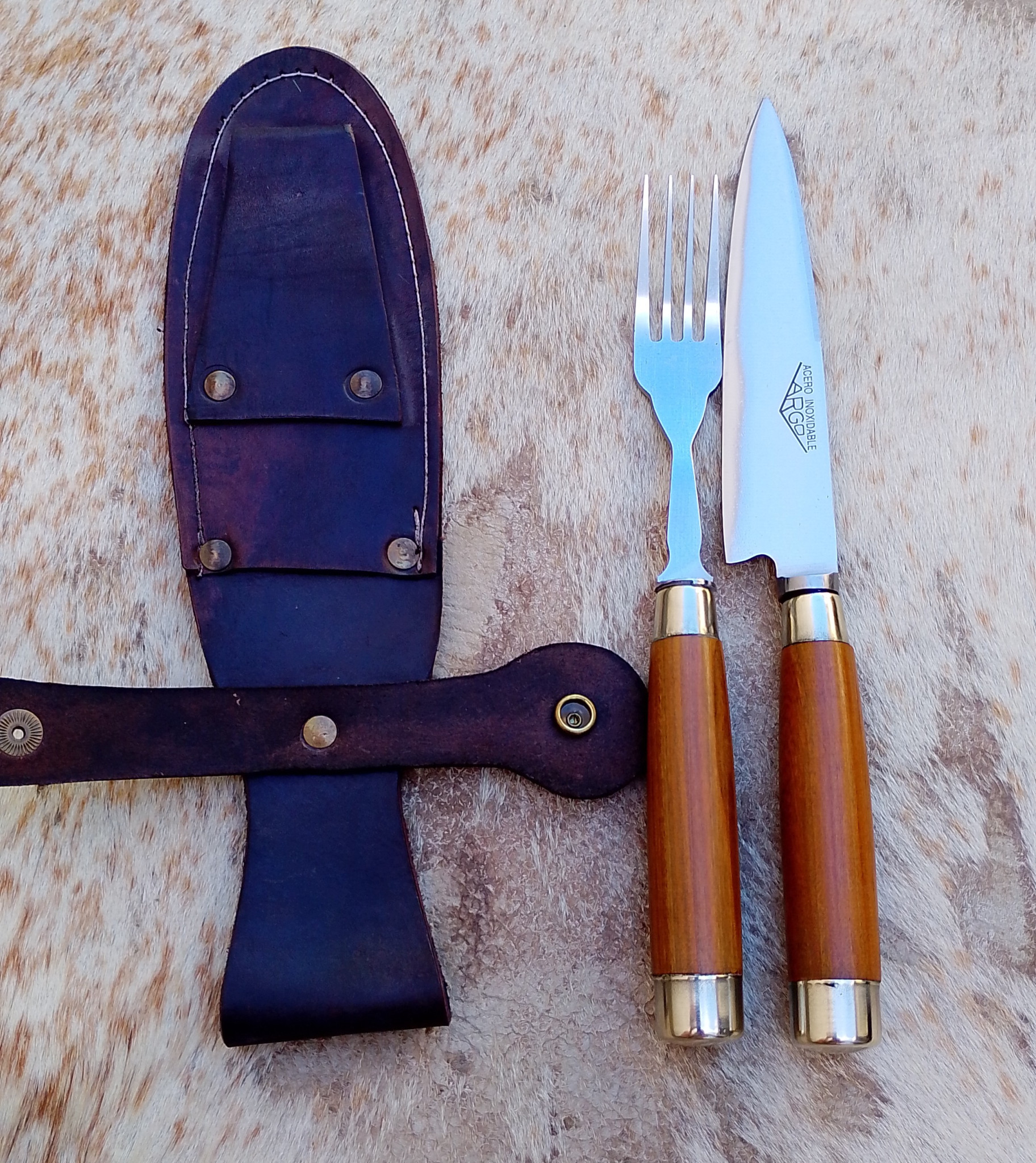 El set se acompaña con vaina individual confeccionada en cuero vacuno, que protege las piezas y realza su presentación.