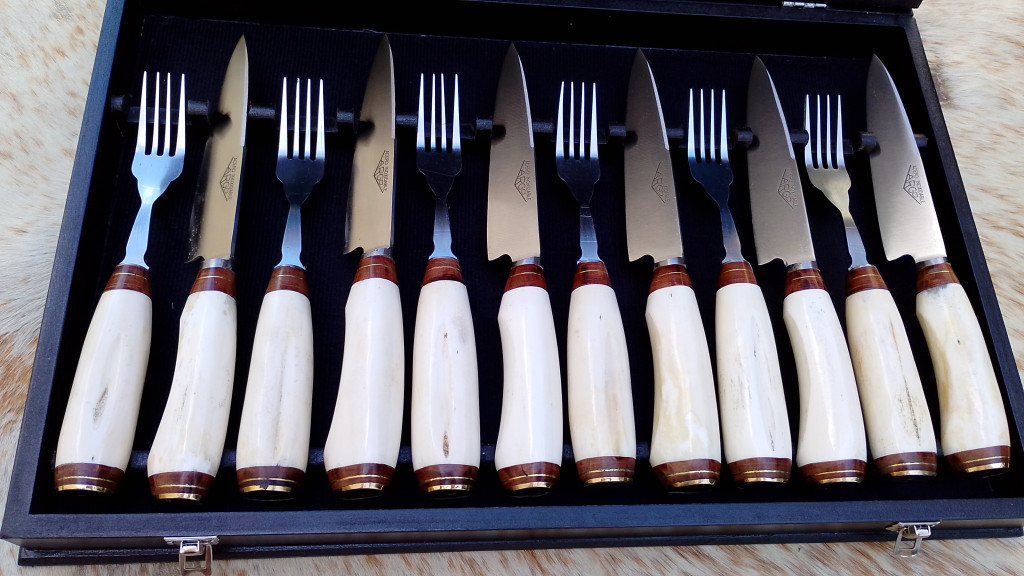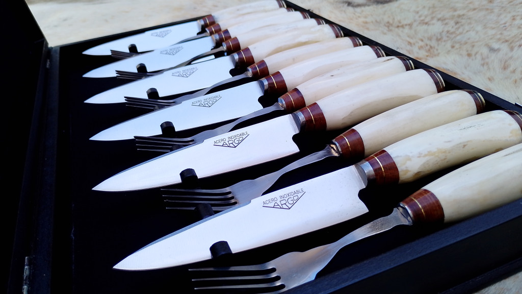 Set compuesto por 6 cuchillos en hoja de 14cm, acompañados por 6 tenedores. Sus mangos fabricados artesanalmente en hueso de potro, combinan la elegancia del Set presentado en caja con el tono marfil de los mangos, logrando una armonía perfecta a la hora de compartir una comida con amigos.